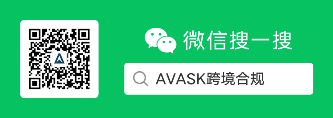 欢迎扫描上方二维码关注我们,如果您有任何需求或疑问,点击「联系我们」免费咨询AVASK合规专家,获取进一步专业帮助。