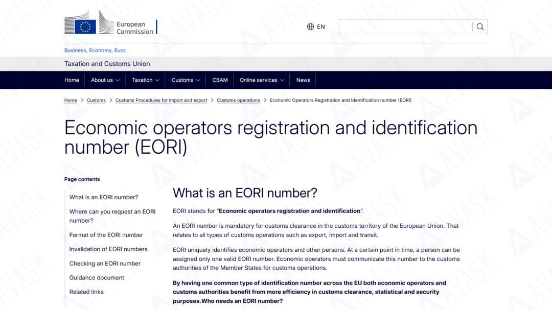 欧盟EORI号码(全称Economic Operators Registration and Identification),即经济运营商注册识别号,是欧盟海关系统用于识别在欧盟境内进行进出口贸易的经济运营者的唯一编码。简单来说,EORI号就是您在欧盟进行国际贸易的“身份证”或“通行证”。