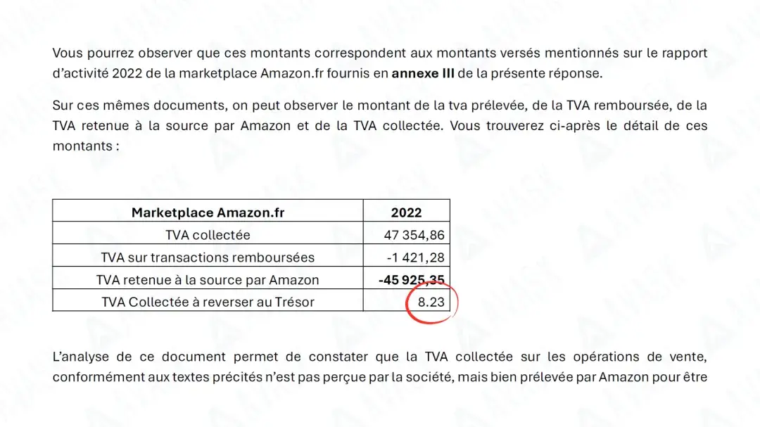 法国税局直接提取了该客户在亚马逊平台上的巨额销售数据作为税基。但我们通过专业的法律依据向税局指出: