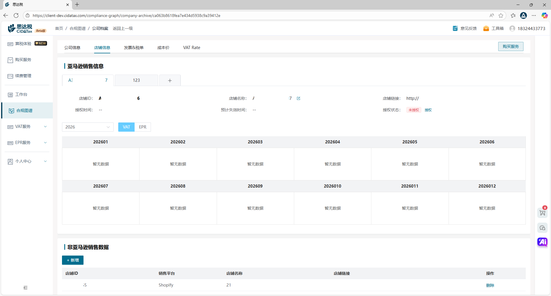 店铺信息 可以用于管理跨境平台店铺(当前支持Amazon店铺)的授权,及授权完成之后系统会定时智能拉取店铺后台销售报告;支持管理店铺每月授权自动拉取或手动上传的销售数据。同时,也支持管理其他非Amazon店铺的信息及其销售数据