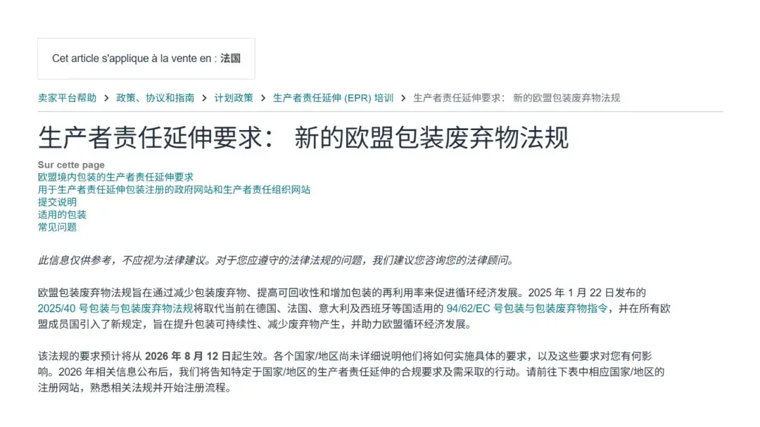 您在哪个国家向消费者销售包装商品,就必须在该国完成相应的EPR注册。建议卖家尽快完成注册,未及时完成注册将被平台自动限制销售权限。