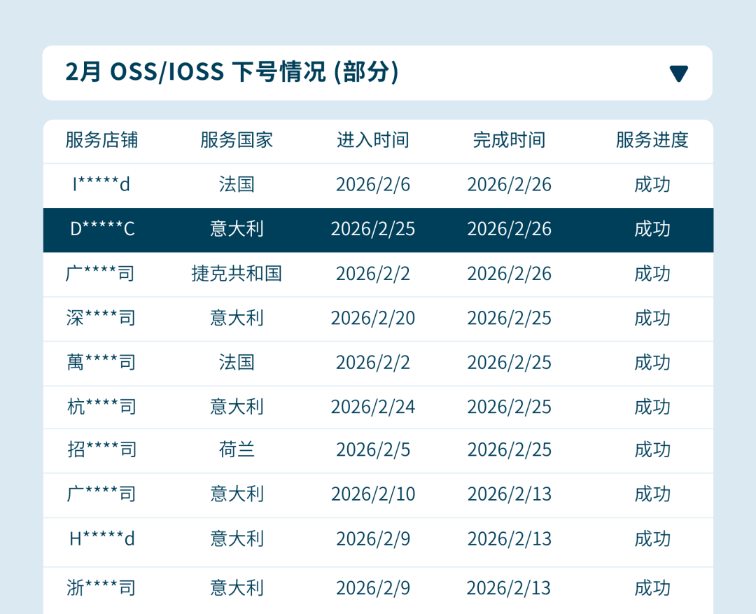 • 极速下号,把握先机:AVASK依托与欧盟多国税局的深度合作通道及成熟的申报系统,提供高效的IOSS注册服务。近期IOSS申请最快仅需1个工作日,平均下号时效约为3周,下号速度在业内处于领先水平!
